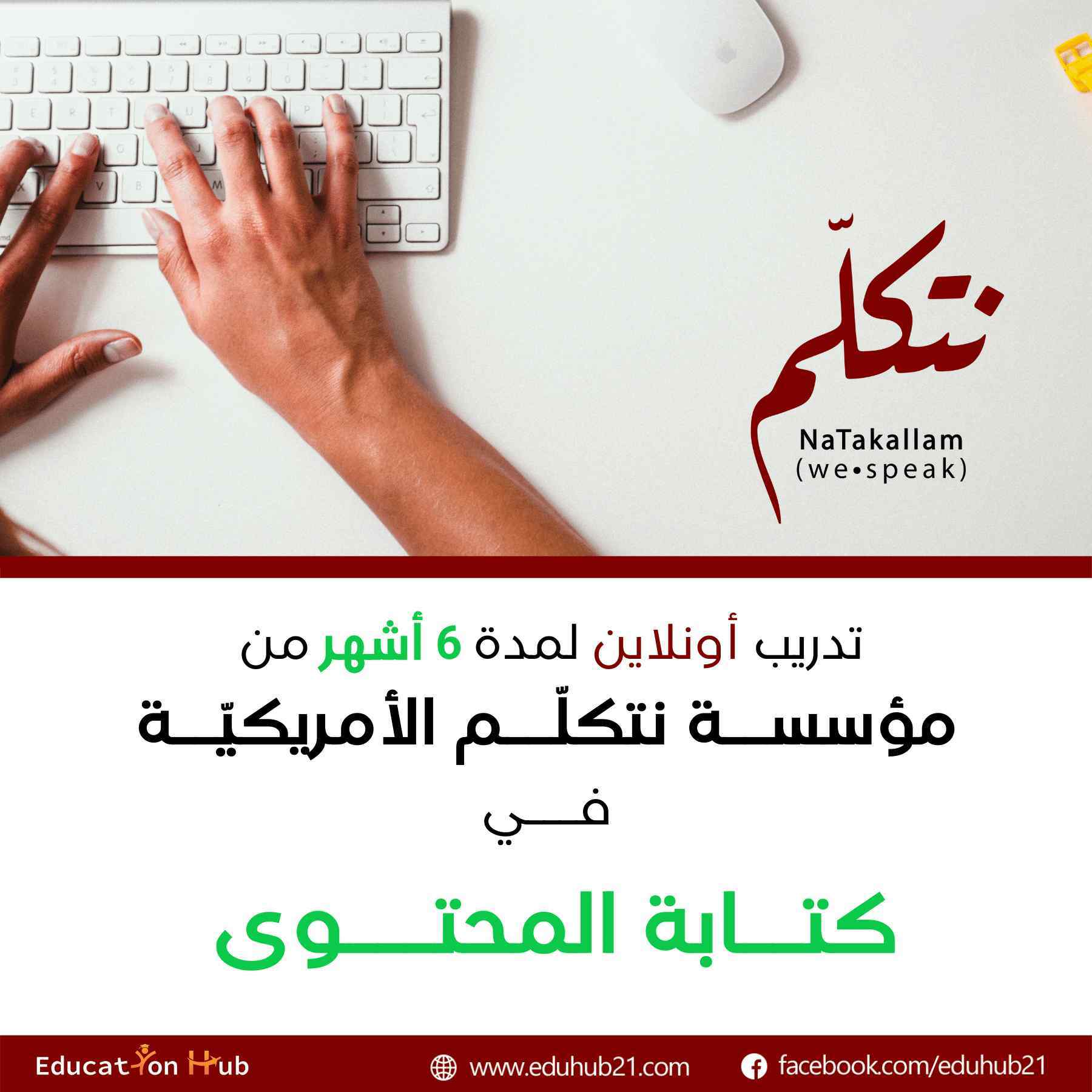 نتكلم هي شركة للخدمات الاجتماعية مقرها أمريكا وتقدم خدمات مثل تعليم لغة والترجمة والتبادل الثقافي. ساعدت هذه الشركة كثير من اللاجئين ويعمل لدى شركة نتكلم أكثر من 100 مترجم، و10,000 مشترك في أكثر من 100 دولة، بالإضافة إلى أكثر من 200 شركة ومؤسسة. تبحث مؤسسة نتكلم عن كاتبين محتوى طموحين لكتابة محتوى باللغة الإنجليزية، سيكون المشترك المثالي لهذا التدريب هو الذي يتميز بالإبداع والتنظيم ولديه عقل فضولي ومستعد للتعلم. سوف يكون المشترك مسؤولاً عن المحتوى الخاص بالشركة عبر الإنترنت. يتم البحث عن الأشخاص الذين يسعون لاكتساب الخبرة في مجال كتابة المحتوى وبجانب مهارة اللغة الإنجليزية، يفضل أن يكون يمتلك لغة أخرى مثل العربية أو الفرنسية أو الفارسية أو الإسبانية.