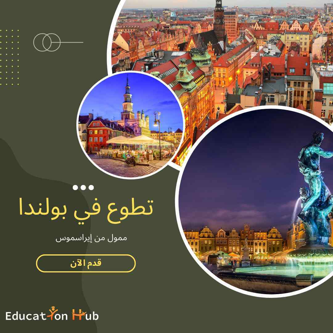 فرصة تطوع ممولة من إيراسموس في أوروبا وتحديدا بولندا. يحتوي البرنامج على عدد من التدريبات لتقديم عروض واكتساب مهارات جديدة وسوف يتم تمويل الإقامة والطيران وعدد من المميزات الأخرى. 2022- Education Hub