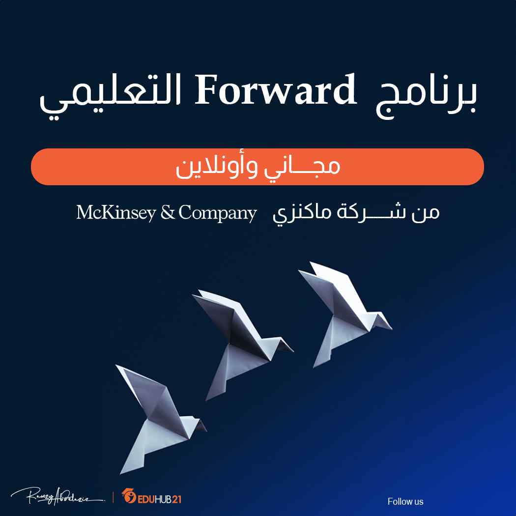 برنامج ماكنزي هو برنامج لمدة خمسة شهور واونلاين وهدفه هو جعل الشباب يكتسبون المهارات اللازمة لمستقبلهم المهني. برنامج ماكنزي فورورد يتكون من ثلاثة مستويات من التعلم، حيث من خلال هذا البرنامج يمكنك من تطوير طرق جديدة للتفكير وتعزيز ثقتك وتتعلم كيف تحقق اهدافك. في نهاية البرنامج من ماكنزي، سوف يكون لديك السماحية لان تكون جزء من شبكة عالمية من الشباب.