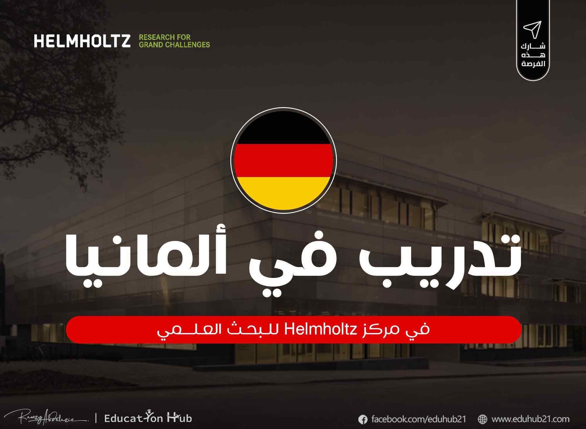 تدريب في ألمانيا في بحث علمي في مركز هلمهولتز أحد اكبر المراكز البحثية في ألمانيا والهدف هو تطوير المهارات البحثية. هذه التدريب يشمل راتب شهري لمدة 3 شهور. Education Hub-2022