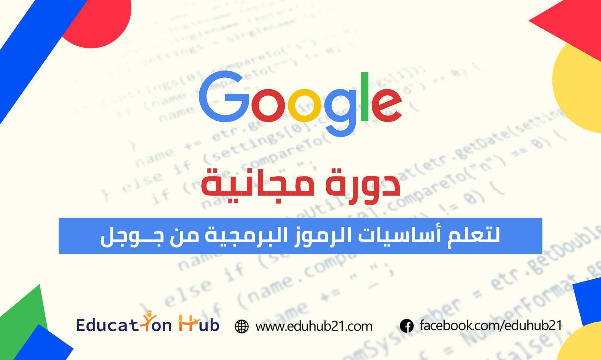 في عصر التكنولوجيا والإنترنت، أصبح تعلم البرمجة أمر ضروري لمواكبة هذا العصر. وأصبحت الوظائف التي تتطلب مبرمجين من أكتر الوظائف المطلوبة عالميًا ورواتبها مرتفعة مقارنة بالعديد من الوظائف الآخرى. الجميل في تعلم البرمجة انه يمكنك تعلمها بغض النظر عن سنك أو مجال دراستك، حيث أصبحت العديد من المنصات التعليمية توفر دورات مجانية لتعلم لغات البرمجة. تقدم جوجل دورة للتعلم عن أساسيات الرموز البرمجية. هذه الدورة مجانية وللمستوى المبتدئ، وتعتبر فرصة ممتازة لمن يدخل إلى عالم البرمجة لأول مرة.