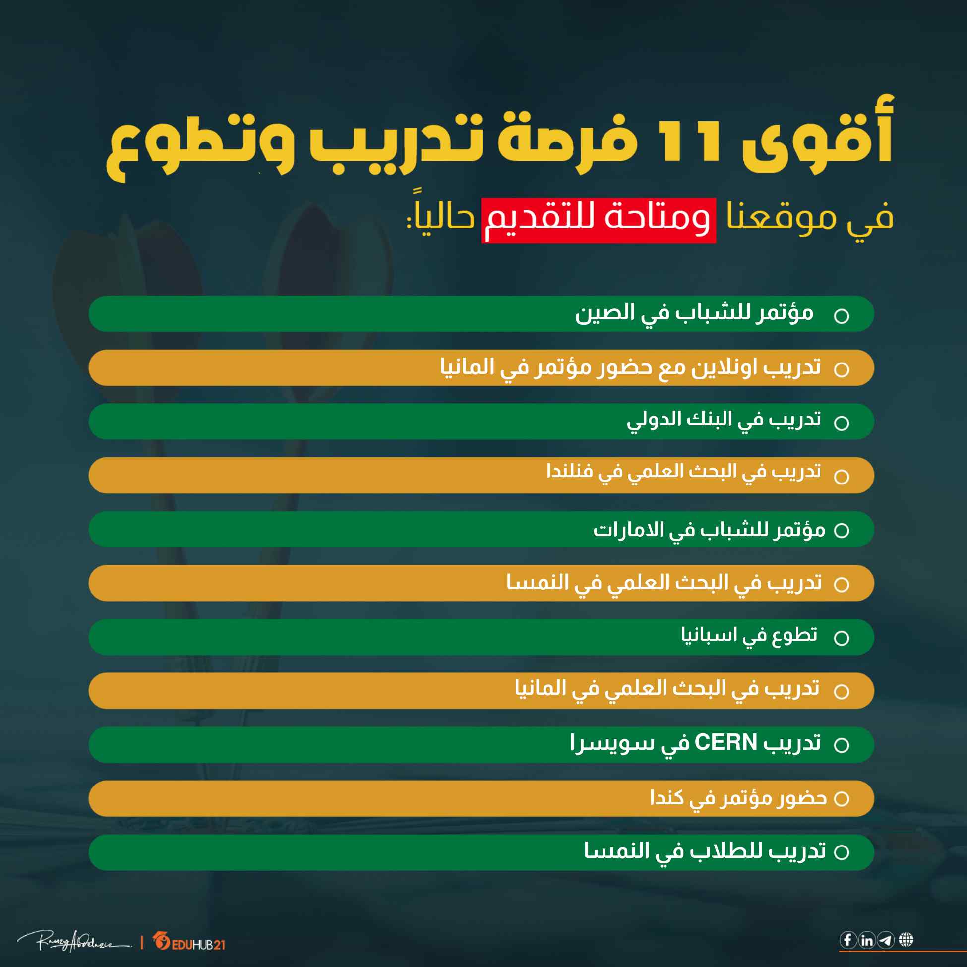 فرص التدريب هذه تعتبر سفر للخارج بدون مصاريف، حيث ان البرامج المعلنة عن هذه الفرص توفر تمويل كامل للطلاب مع وجود امتيازات أخرى مثل راتب شهري.