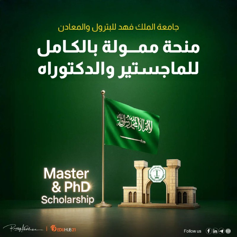 تُقدّم جامعة الملك فهد للبترول والمعادن (KFUPM) في المملكة العربية السعودية منحة دراسية مميزة للطلاب المتفوقين الراغبين في متابعة دراساتهم العليا في برامج الماجستير أو الدكتوراه، سواء من داخل المملكة أو من خارجها. وتشمل هذه المنحة مزايا متعددة تتيح للطلاب التفرغ الكامل للدراسة والبحث.