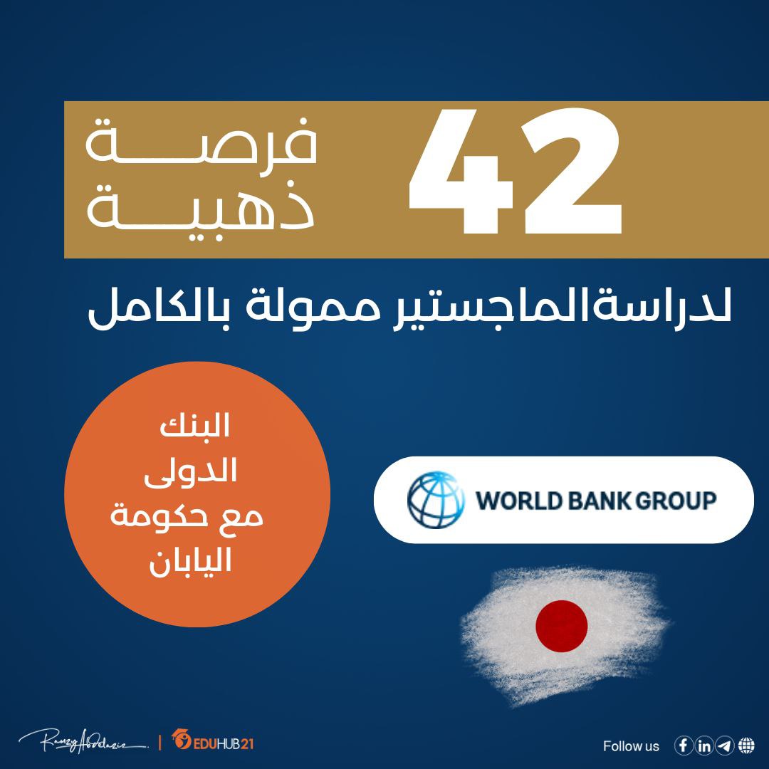 اذا كنت ترغب فى دراسة الماجستير فى جامعة مرموقه وبشكل مجانى تماماً لا تفوت هذه الفرصة .يقدم البنك الدولى مع دولة اليابان 42 منحة ماجستير ممولة بالكامل للطلاب من الدول النامية .يهدف البنك الدولى من هذه المنح الى اعداد كوادر تعليمية قوية فى مجالات إدارة السياسات الاقتصادية، سياسة الضرائب، الإدارة العامة، والاستدامة البيئية التي تُدرس في الجامعات في اليابان، والولايات المتحدة، وأفريقيا، وأوروبا، وأوقيانوسيا. الموعد النهائي للتقديم على المنحة هو 23 مايو 2025 .تقدم المنحة 42 برنامج ماجستير ممول بالكامل يتم تدريسهم فى 24 جامعة على مستوى العالم .لمزيد من التفاصيل حول المنح تابع معنا هذا المقال للنهاية.