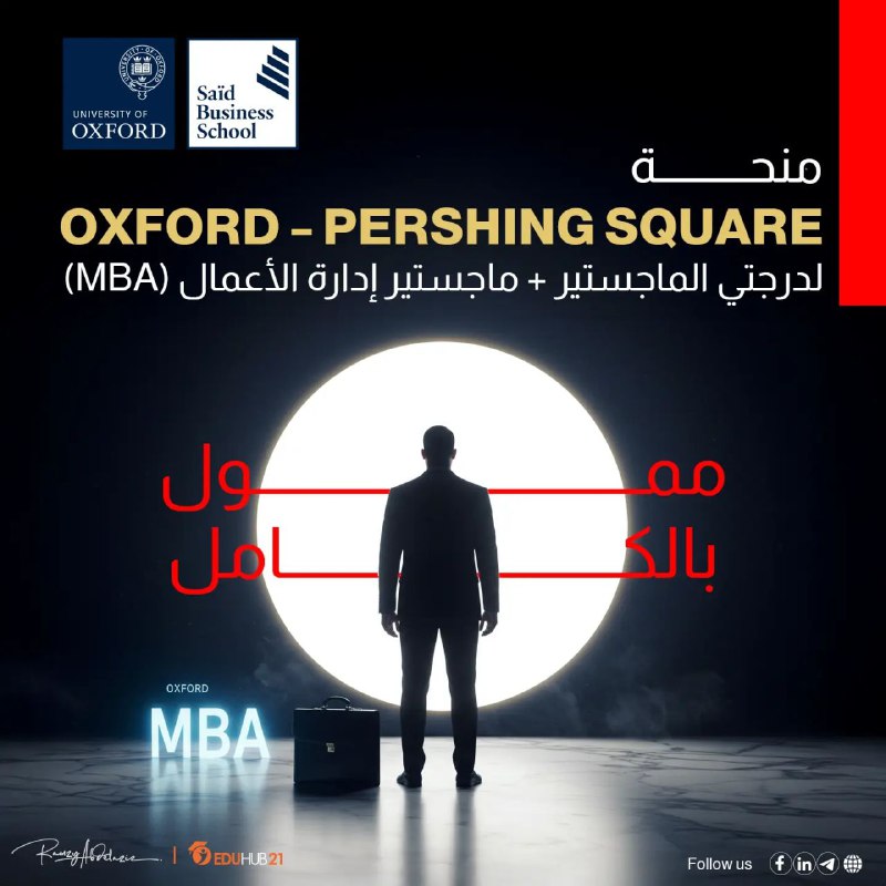 تقدم جامعة أوكسفورد بالتعاون مع مؤسسة Pershing Square منحةOxford – Pershing Squareللطلاب المتميزين الذين يسعون لإحداث تغيير حقيقي ومستدام في العالم من خلال الجمع بين درجة الماجستير ودرجة الماجستير في إدارة الأعمال (MBA) في برنامج 1+1 الشهير.